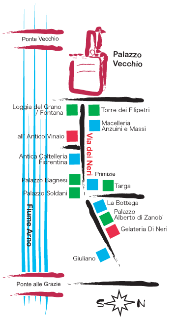Via dell'Osteria del Guanto(オステリア・デル・グアント通り)をはさんでアッランティコ・ヴィナイオの隣にはフィレンツェの北に約30km離れた刃物の町Scarperia(スカルペリア)のConsigli(コンシーリ)の商品を多く扱う刃物専門店のAntica Coltelleria Fiorentina(アンティカ・コルテッレリーア・フィオレンティーナ)があります。