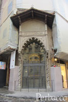 マウロ・ヴォルポーニの左隣りは食肉業組合の本部があった建物で、今でも上階には組合の紋章だった雄ヤギのレリーフが残っています。